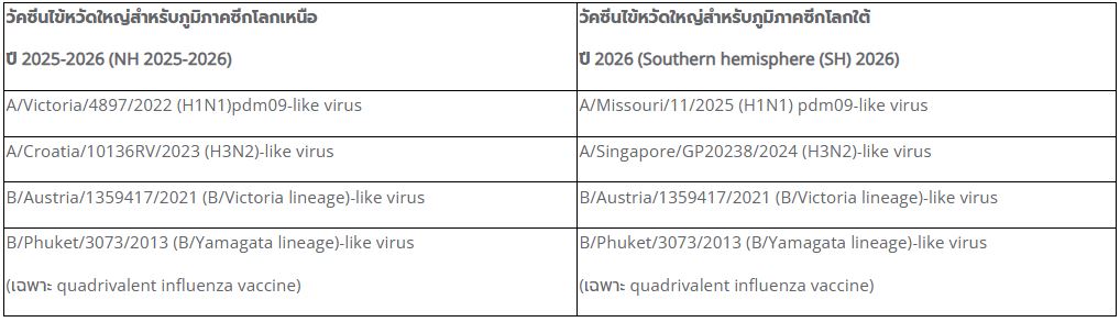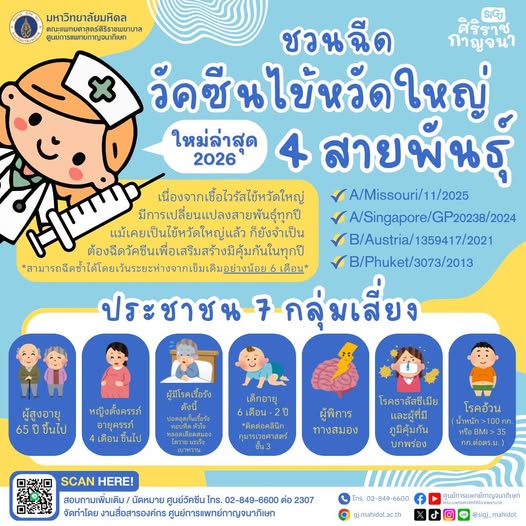 ชวนฉีดวัคซีนไข้หวัดใหญ่ 4 สายพันธุ์ (ใหม่ล่าสุด 2026)