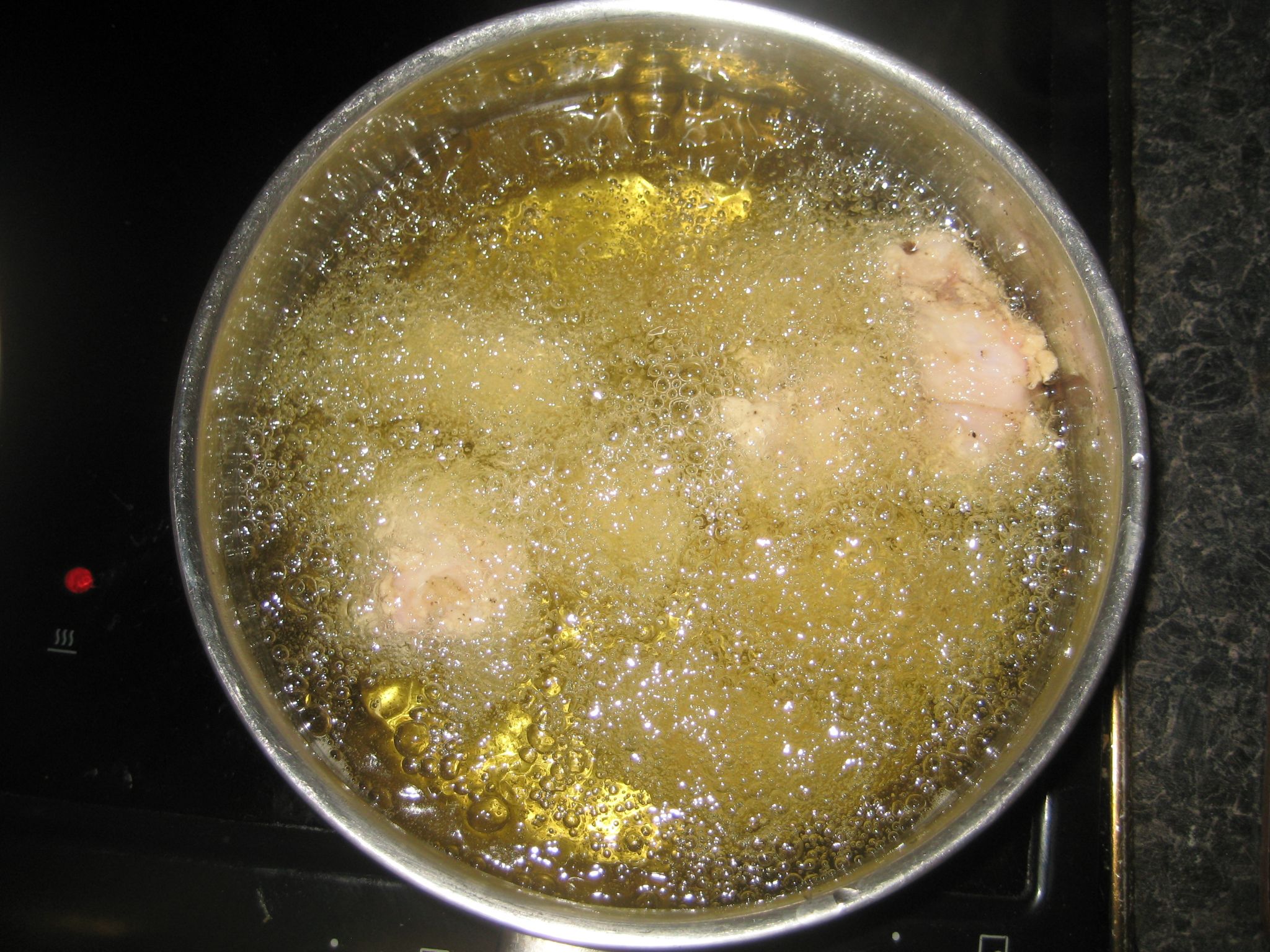 ครบกำหนดนำไปคลุกกับแป้งทอดกรอบให้ทั่วชิ้น นำลงทอดให้สุกกรอบ พักไว้ให้สะเด็ดน้ำมัน