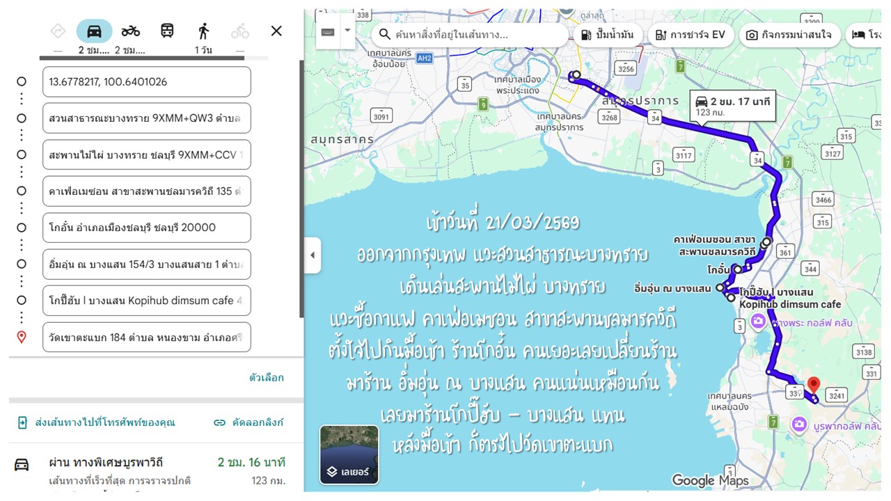 เช้าวันที่ 21/03/2569 ออกจากกรุงเทพ แวะ