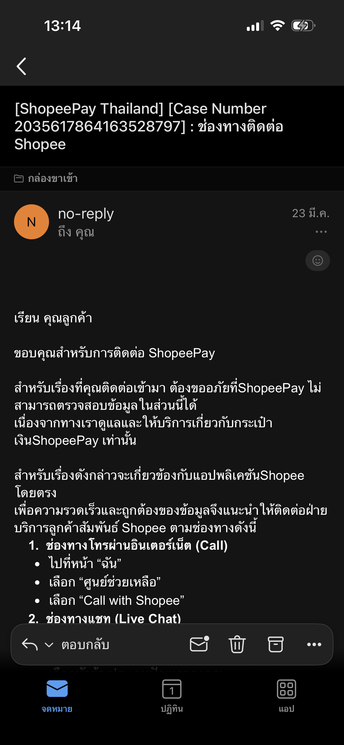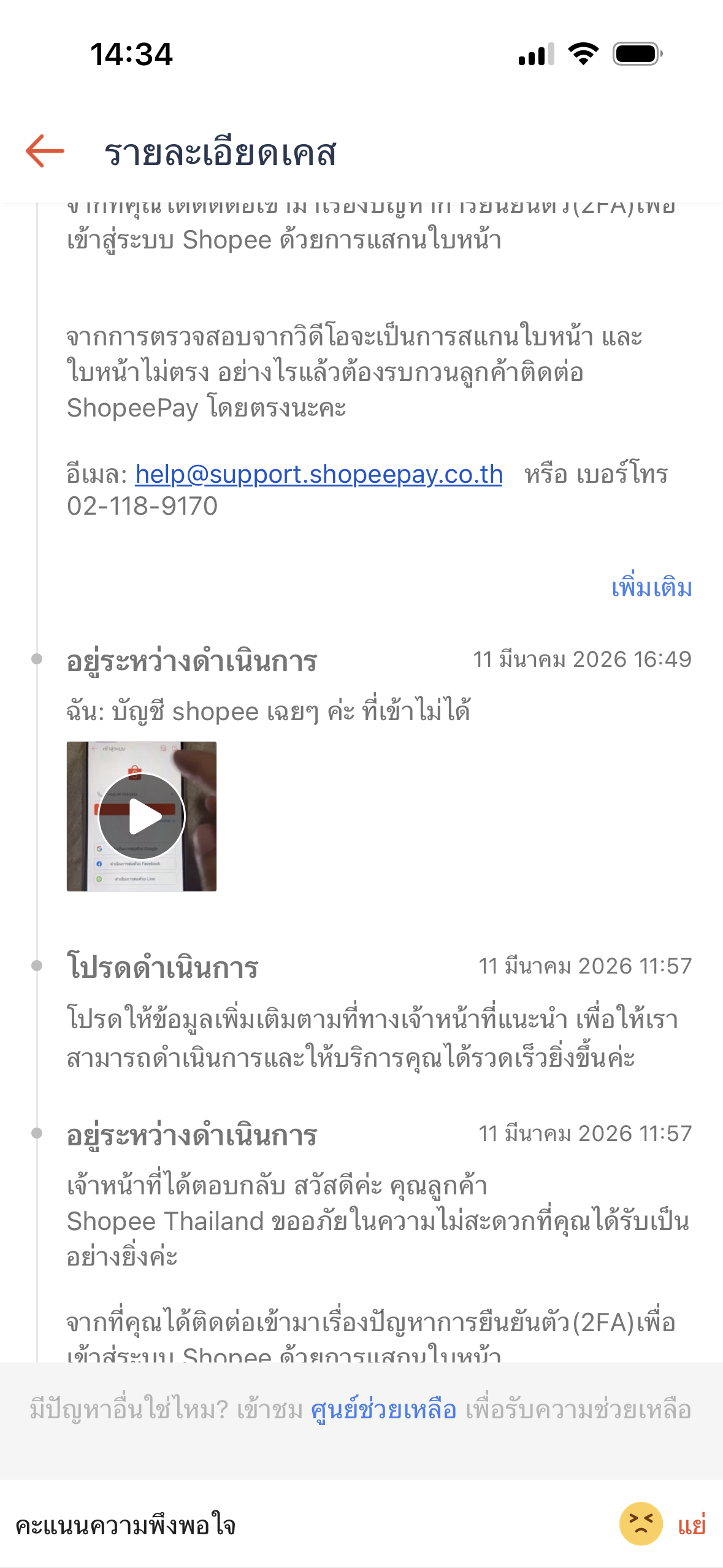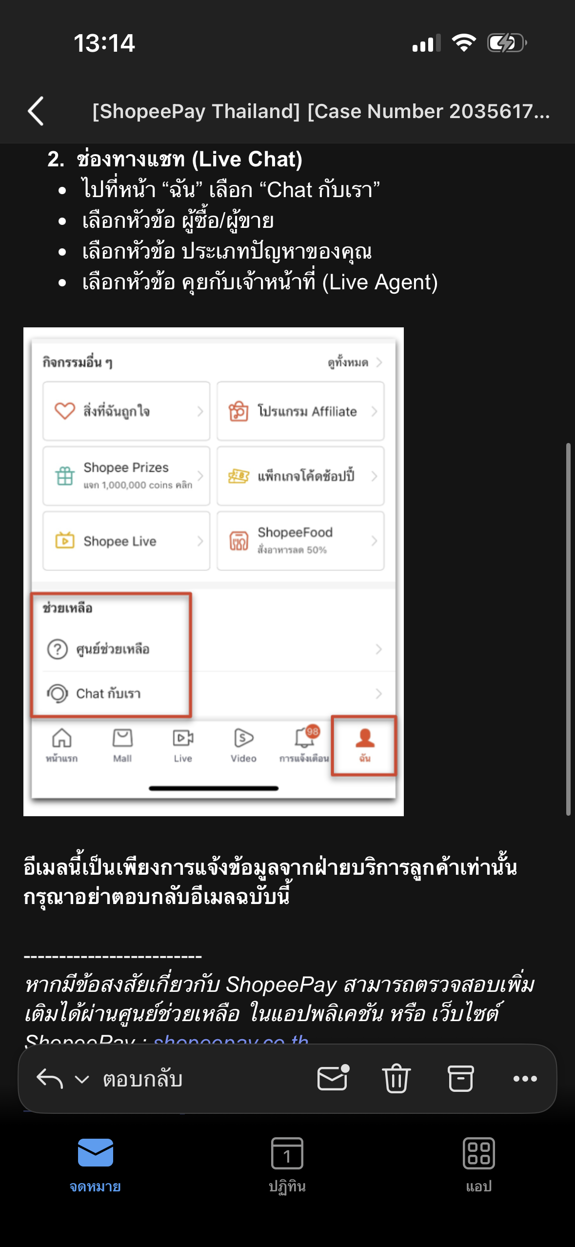 help@suport.shopeepay.co.th เราก็แนบหลักฐานทั้งหมดเหมือนที่แนบไปตอนแรก