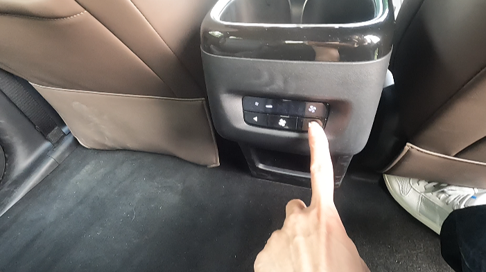 และไม่มีที่วางพักเท้ามาให้ มีที่ชาร์จมือถือ 50 W กระจกมองหลังใหญ่ดีเวลามอง เปิดปิดประตูและหลังคาซันรูฟได้บนเพดานรถตรงกระจกมองหลัง