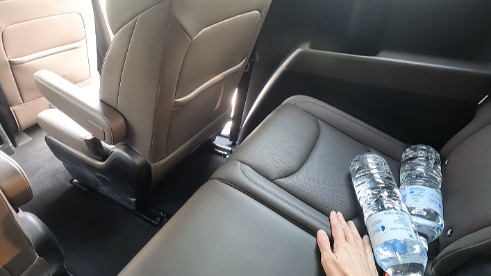 มีแอร์ฝังที่เพดานด้านข้าง เบาะแถวสองปรับไฟฟ้าเอนได้ 180 องศา ส่วนเบาะแถวสามนั่งได้จริงแต่จะให้สบายขา เบาะแถวสองต้องเลื่อน