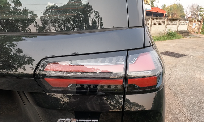 ส่วนด้านท้ายรถดูสวยดีไฟท้าย LED มีไฟเบรคหลังตรงสปอยเลอร์หลังคามาให้มีที่ฉีดน้ำที่ปัดน้ำฝนมาให้ ประตูท้ายเปิดปิดด้วยไฟฟ้า มีเซ็นเซอร์ 4 จุด ไฟถอยอยู่ด้านล่าง ประตูท้ายเปิดได้ศุงประมาณ 1.80 กว่ามีระบบกันประตูหนีบมาให้ด้วย สัมภาระท้ายรถมีขนาด สามร้อยกว่าลิตร