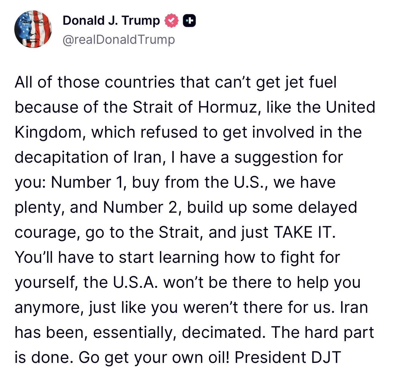 อันธพาลคลั่งโวยวายไล่ “ไปหาแหล่งน้ำมันของคุณเองเถอะ” ถ้าไม่ช่วยรุกรานอิหร่าน