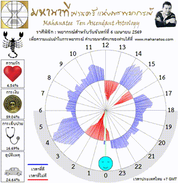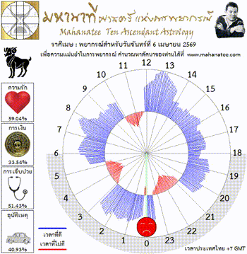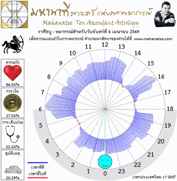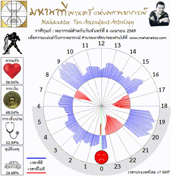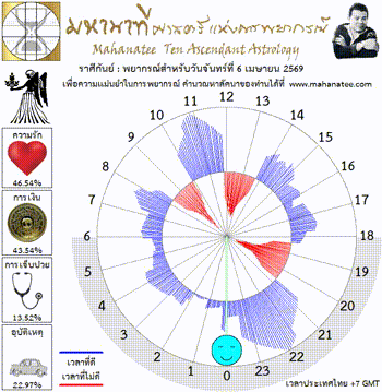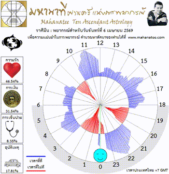 แผนภูมิและพยากรณ์ 12 ราศี สำหรับ วันจันทร์ที่ 6 เมษายน 2569
