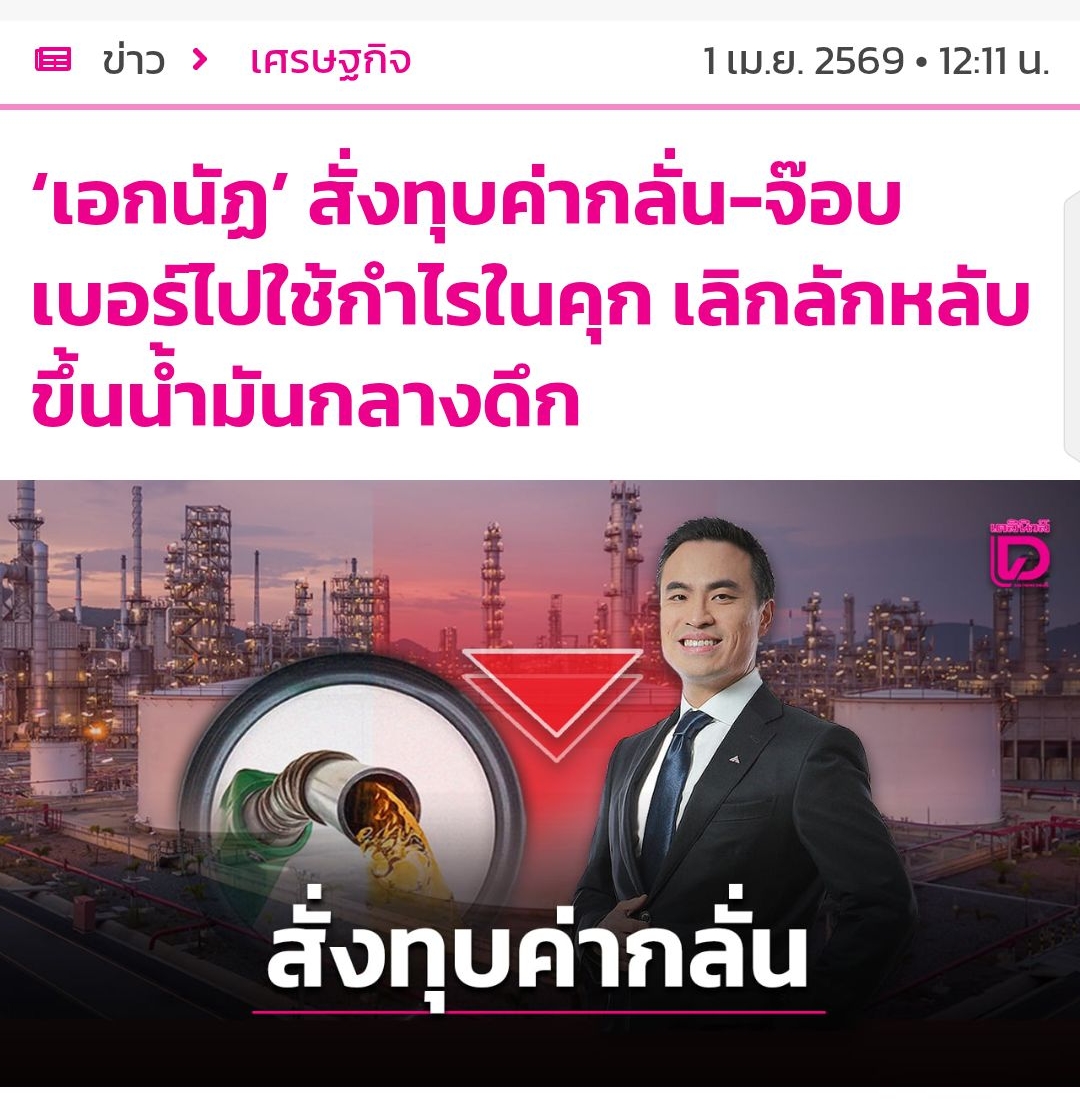 "เอกนัฏ" ไฟแรง สั่งงานล่วงหน้า "ต้องกล้าทุบ" โครงสร้างพลังงานทั้งระบบ ทุบค่าการกลั่น ทุบจ๊อบเบอร์กักตุน ลอบส่งออก เชื่อมีไอ้โม่งกินส่วนต่าง เตรียมส่งทีมสุดซอย สุดถัง กระชากหน้ากาก เข้าไปใช้กำไรในคุก เอาให้ฝันร้าย สั่งเลิกลักหลับประกาศขึ้นราคาน้ำมันกลางคืน เว้นลดราคาทำให้ประชาชนฝันดี
