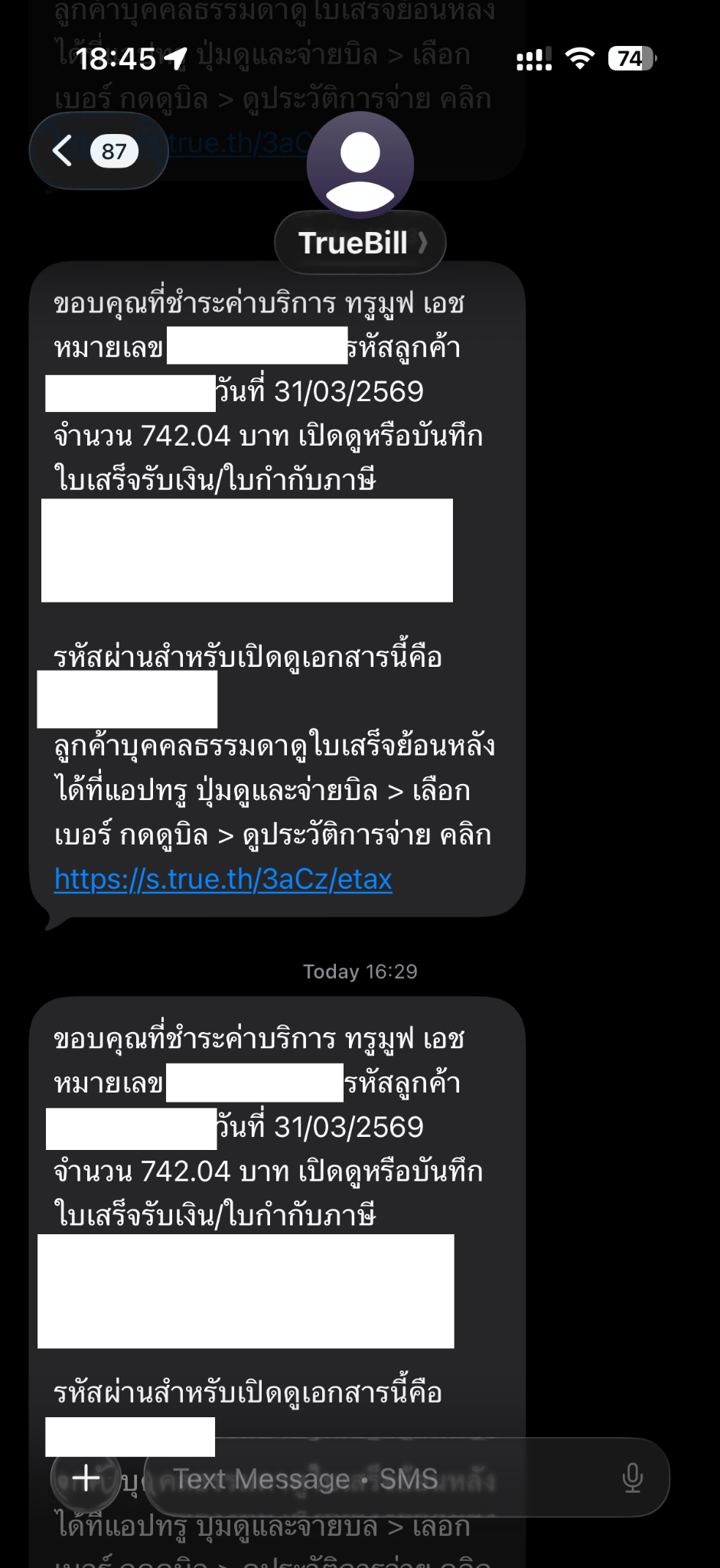 หลังจากนั้น ระบบส่งข้อความ ขอบคุณที่ชำระค่าบริการมารัวๆ ถึง ณ ตอนนี้ ประมาณ 20 กว่าครั้ง
