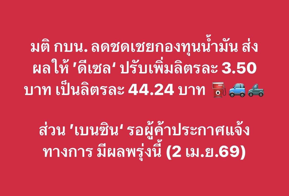 👉 พรุ่งนี้ดีเซลขึ้นราคาอีก