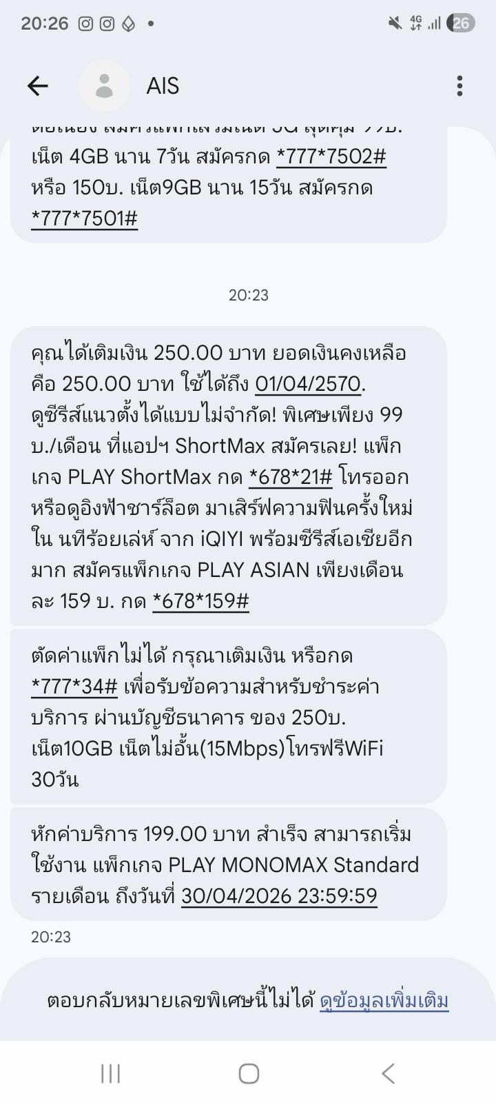 คืออยากรู้ว่า เติมเงินมาทำไมมันหักแพคเกจไม่ได้ แล้วไปหักอีกอัน
