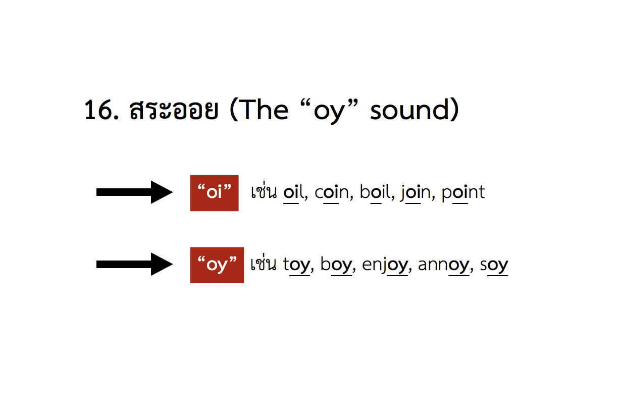 16. “สระออย” (The OY sound —> /ɔɪ/) มีตัวสะกดหลักอยู่ 2 แบบ
