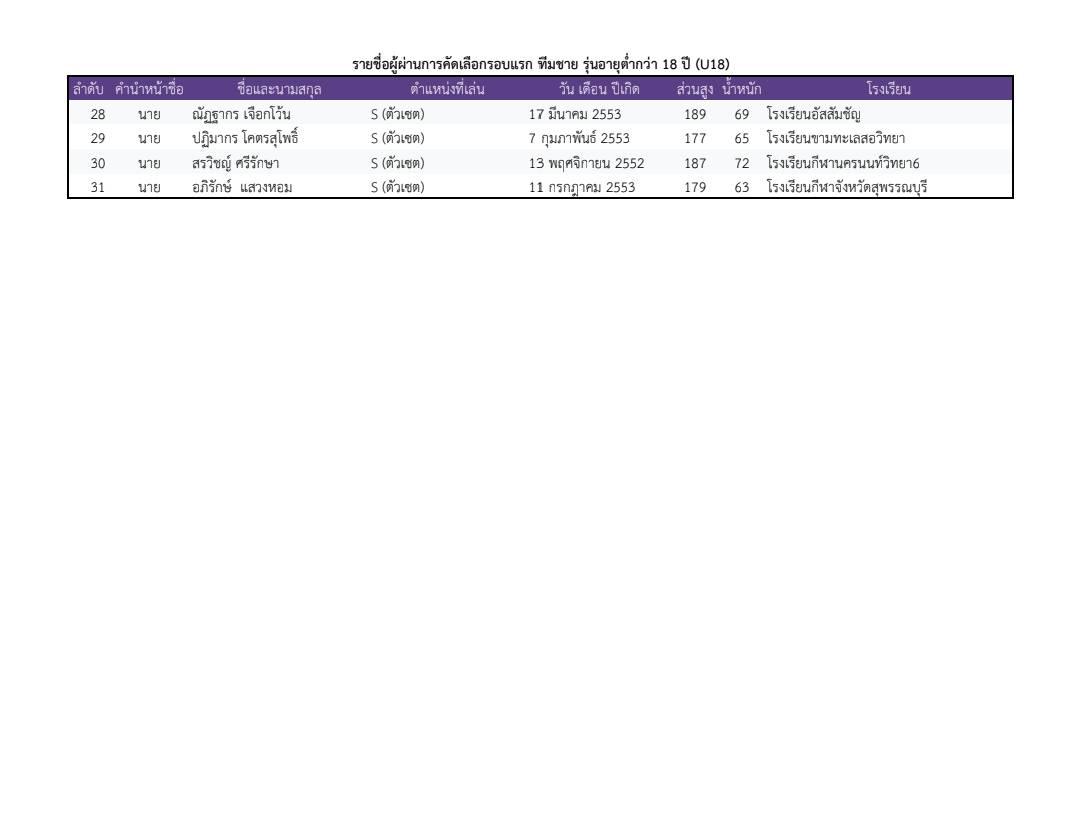ประกาศรายชื่อรอบแรก U18 ชิงแชมป์เอเชีย และ U17 ชิงแชมป์โลก