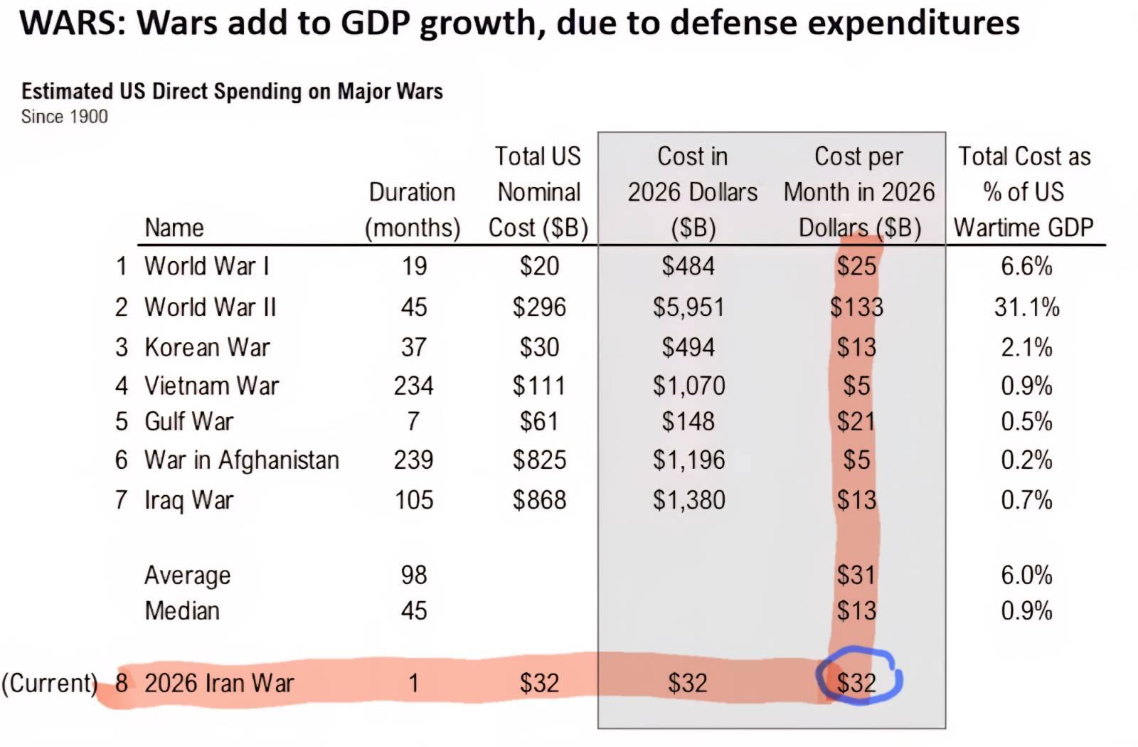 มาดูผู้แพ้ใช้เงินไป 32,000 ล้านเหรียญ ใน 1 เดือน ถ้าคูณ multiplier 1.5 เข้าไป ได้ 50,000ล้านหรียญ เงินนี้จะเข้ามาในระบบเศรษฐกิจ เทียบกับสงครามครั้งก่อนแล้วใช้เงินไม่มากครับ