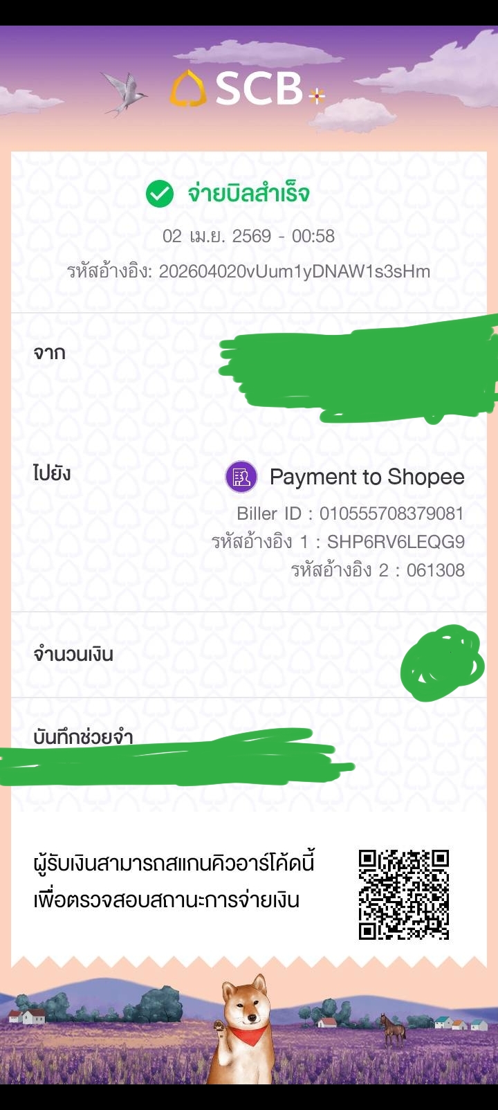 เราจ่ายเงินไปทาง app SCB ของธนาคารไทยพาณิชย์
