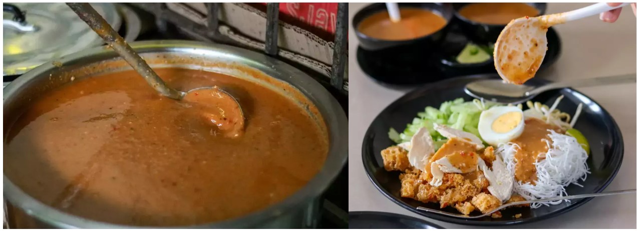 เมื่อราดลงบนเส้นหมี่ เคียงด้วยถั่วงอกกรุบกรอบ แตงกวา ไข่ต้ม และเนื้อสัตว์ที่ปรุงสุกพอดี ไม่ว่าจะเป็นเนื้อวัวหรือเนื้อไก่ กลิ่นหอมของน้ำราดและสีสันบนจานชวนให้ลิ้มลอง น้ำราดเข้มข้นหอมเครื่องเทศแบบมลายู เจือหวานเค็มกำลังดี ตัดด้วยรสเปรี้ยวอ่อน ๆ จากมะนาวและพริก เพิ่มรสกลมกล่อมลงตัว ในแบบที่คนใต้เรียกว่า รสชาติถึงใจที่ทำให้ผู้กินจำได้ไม่รู้ลืม ในแต่ละคำจึงไม่ใช่แค่รสอร่อยของอาหาร แต่คือรสของความตั้งใจ ความทรงจำและความภูมิใจของคนทำที่ยังคงรักษารสชาติอาหารพื้นบ้านไว้