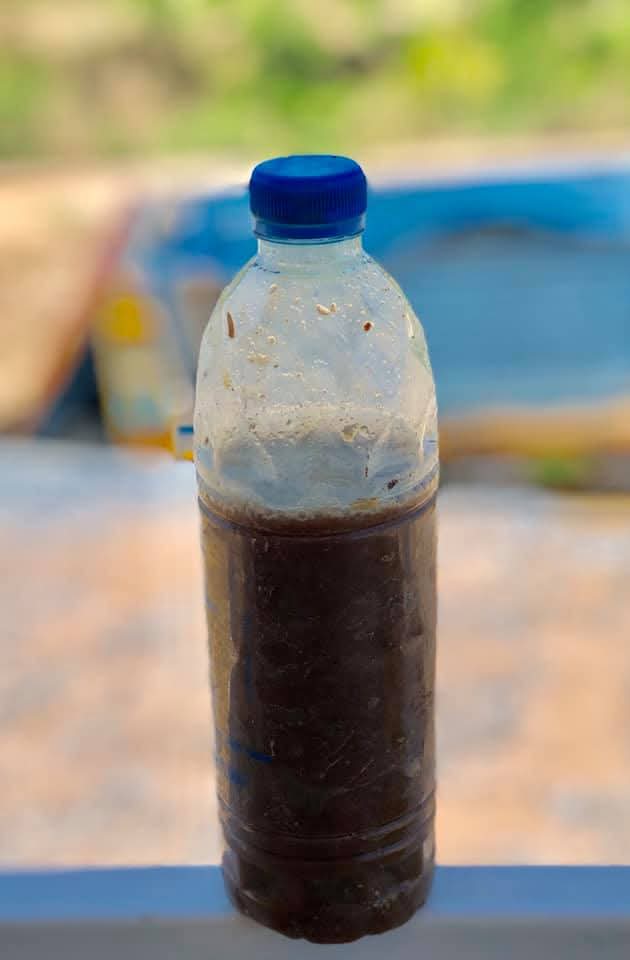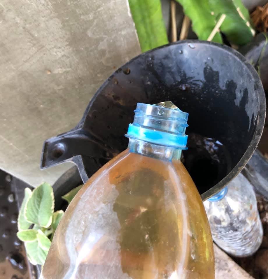 5. นำส่วนผสมทั้งหมดใส่ขวดแล้วเขย่า หมักทิ้งไว้ 1 เดือน จากนั้น ให้เอาน้ำหมักมากรองเฉพาะน้ำ ก็สามารถใช้ได้เลยคะ
