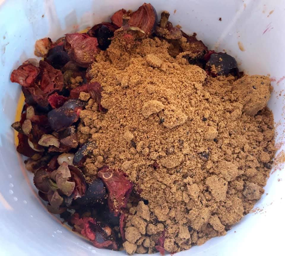 2. คลุกเปลือกมังคุดกับน้ำตาลทรายแดง 1 ส่วน