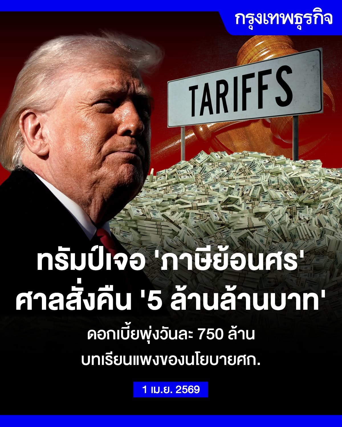 ทรัมป์เจอ ‘ภาษีย้อนศร’ ศาลสั่งคืน ‘5 ล้านล้านบาท’ ดอกเบี้ยพุ่งวันละ 750 ล้าน บทเรียนแพงของนโยบายศก.