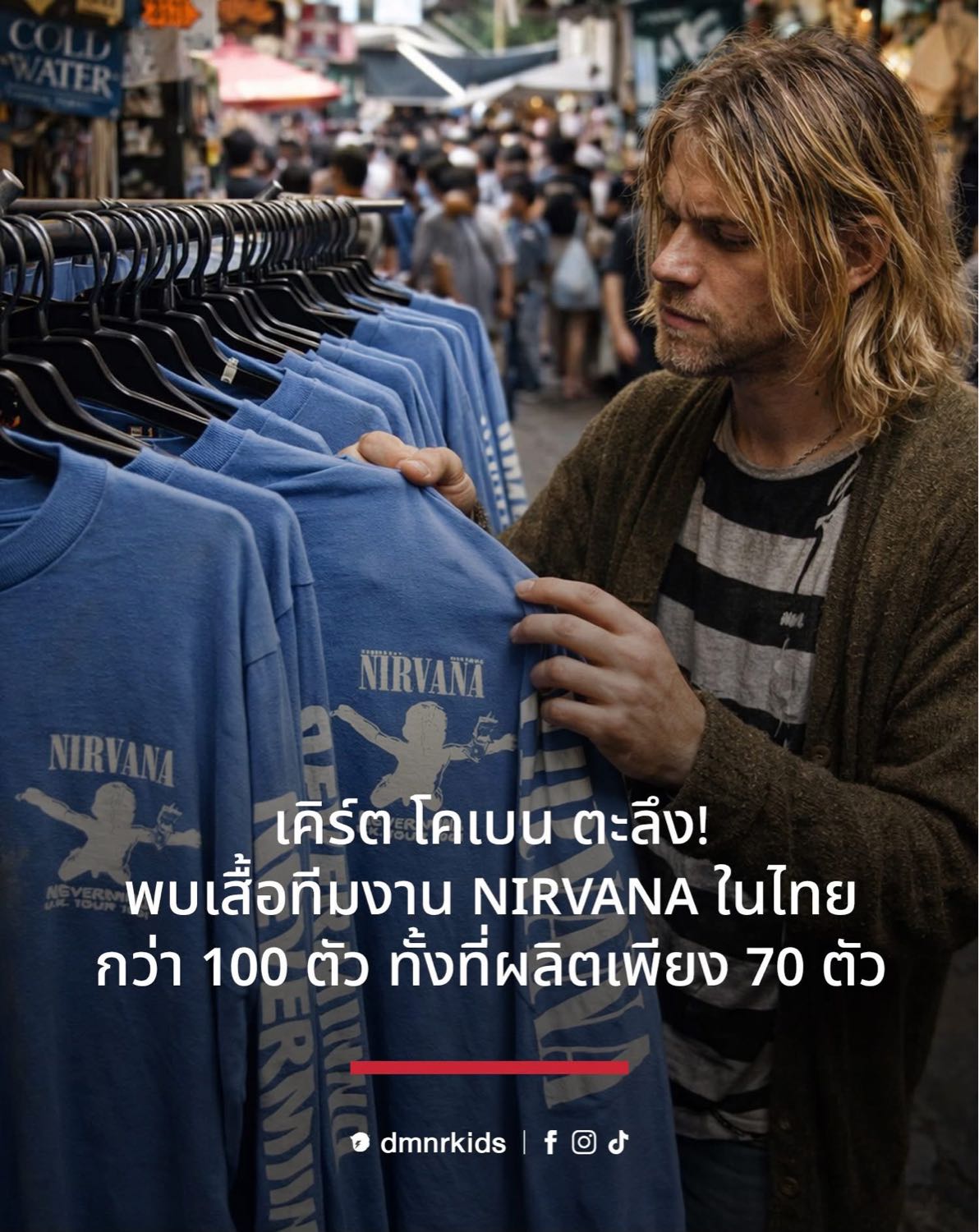 กลายเป็นกระเด็นร้อนไปทั่วโซเชียลเลยทีเดียว เมื่อ เคิร์ต โคเบน (Kurt Cobain) ตำนานกรันจ์เบอร์ใหญ่แห่งยุค 90s บินตรงจากเมืองซีแอตเทิล สหรัฐอเมริกา มาเยือนตลาดเสื้อมือสองหลายแห่งในประเทศไทย เพื่อพิสูจน์ข้อเท็จจริง กรณีเสื้อทีมงานของวง Nirvana ในอดีตที่เคยผลิตออกมาเพียง 70 ตัว ถูกวางขายในไทยอย่างเอิกเริกด้วยราคาสูงลิบ ตั้งแต่หลักหลายแสนบาท จนถึงหนึ่งล้านบาท