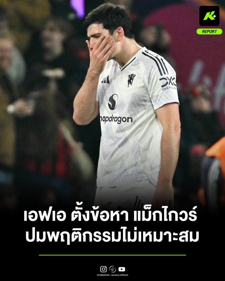แฮร์รี่ แม็คไกวร์ ถูก เอฟเอ ตั้งข้อหาด้านความประพฤติหลังใช้ถ้อยคำหรือท่าทีที่หยาบคาย และ/หรือ ดูหมิ่น ใส่ผู้ตัดสินที่สี่ ภายหลังถูกไล่ออกจากสนามในเกมที่ แมนเชสเตอร์ ยูไนเต็ด เสมอกับ บอร์นมัธ 2-2 เอฟเอ ระบุเพิ่มเติมว่า แม็กไกวร์ มีเวลาจนถึงวันพฤหัสบดีที่ 2 เมษายน เพื่อยื่นคำชี้แจงต่อข้อกล่าวหาดังกล่าว