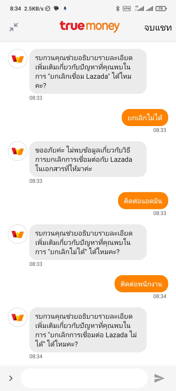 เจ้าหน้าที่ True Money มีคนจริงๆไหม จะยกเลิกเชื่อมLazada เจ้าหน้าที่ก็ทำอะไรไม่ได้