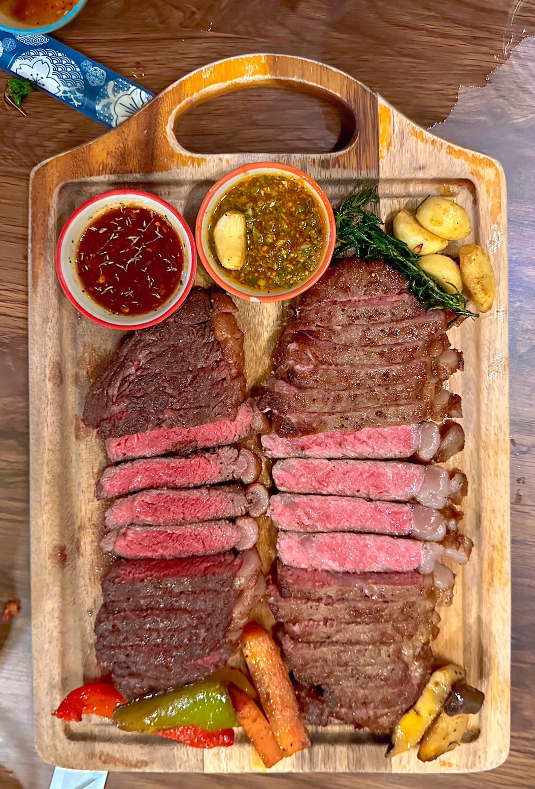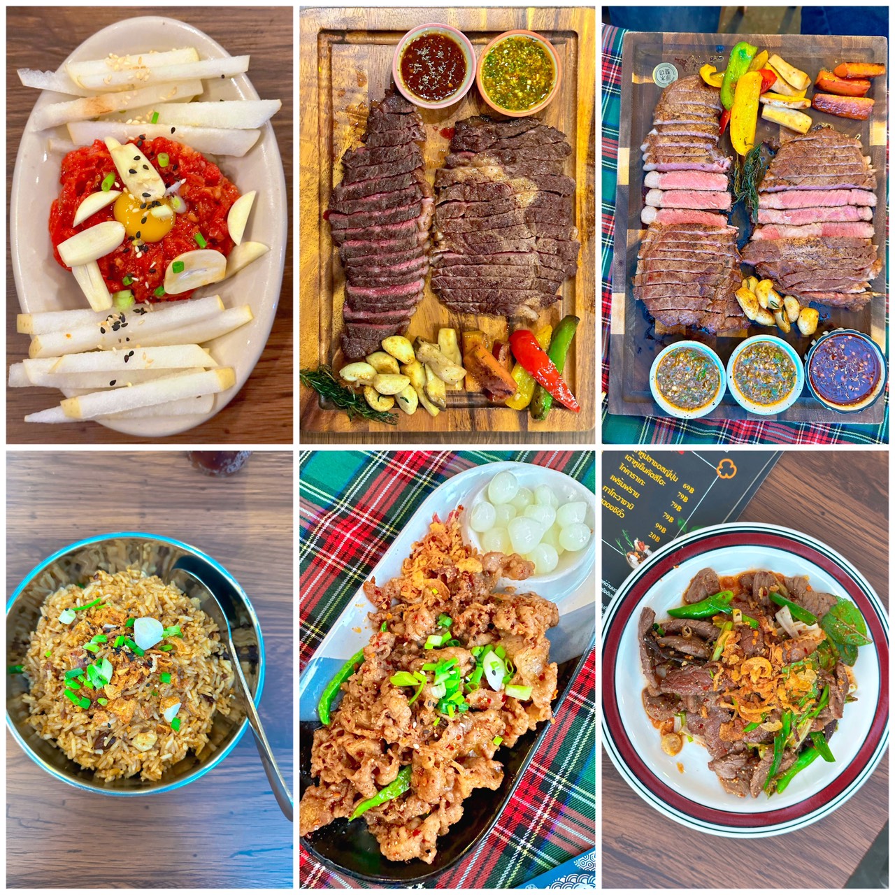 * Ribeye Steak: นุ่ม ฉ่ำ ไขมันแทรกกำลังดี รสเนื้อไม่หนักจนเกินไป ทานง่ายแต่มีมิติ (359-699฿ ตาม นน.)