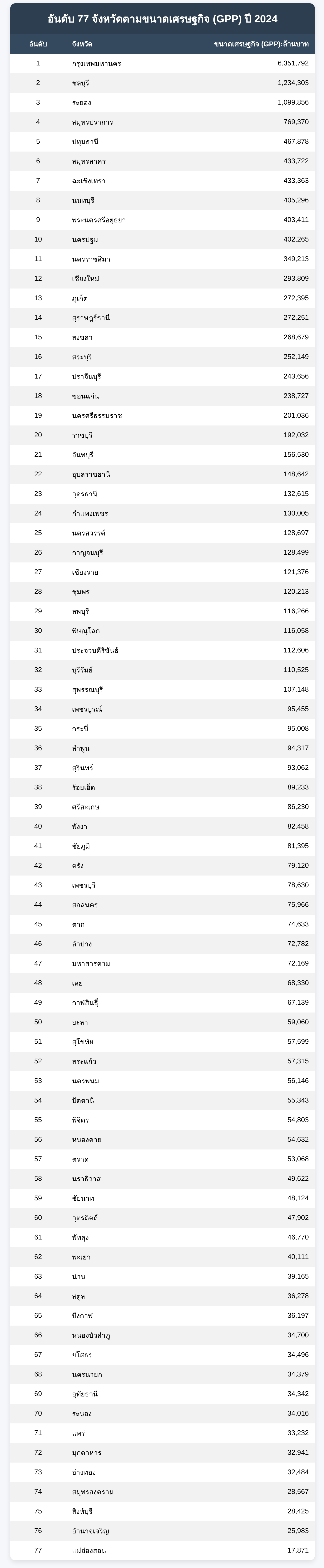 77 จังหวัดเรียงตามขนาดเศรษฐกิจ
