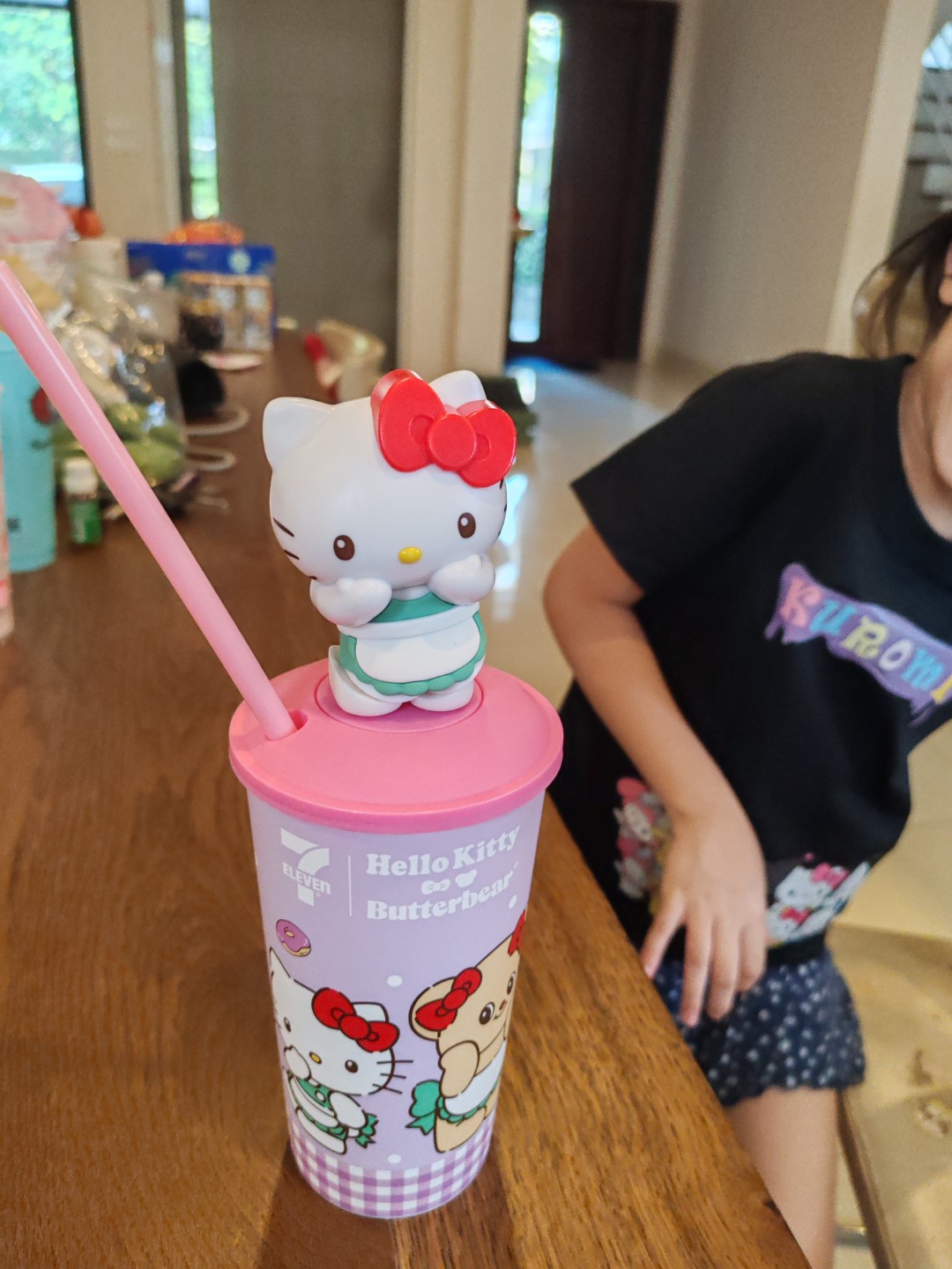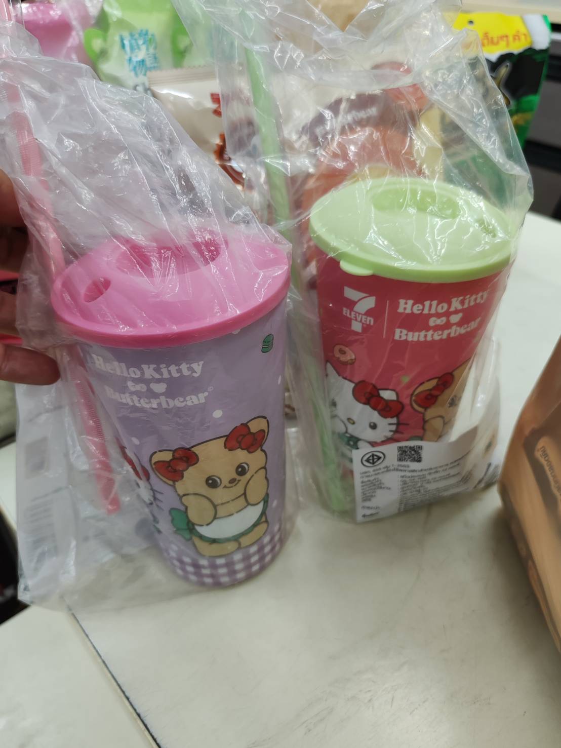 เนี่ยซื้อครบ 300 บาท แถมแก้ว นะ มีให้เลือก คิตตี้ กับ หมีเนย หลานสาวเลือกคิตตี้