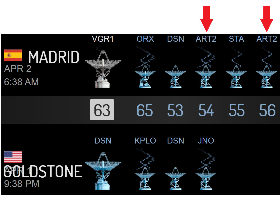 ให้ท่านลองคลิกที่ชื่อจานสายอากาศที่กำลังติดต่อกับ Artemis II ตามภาพ