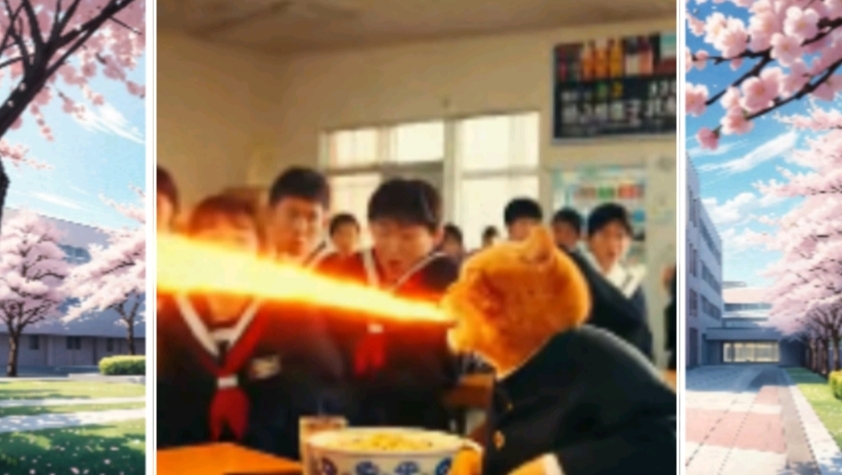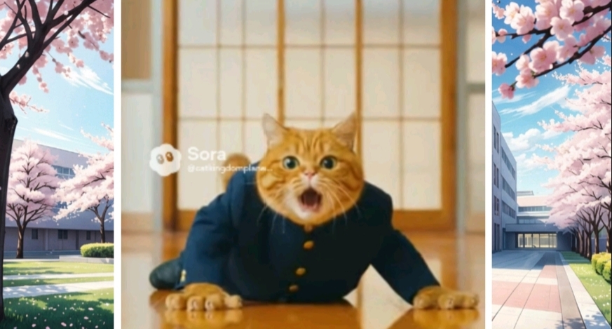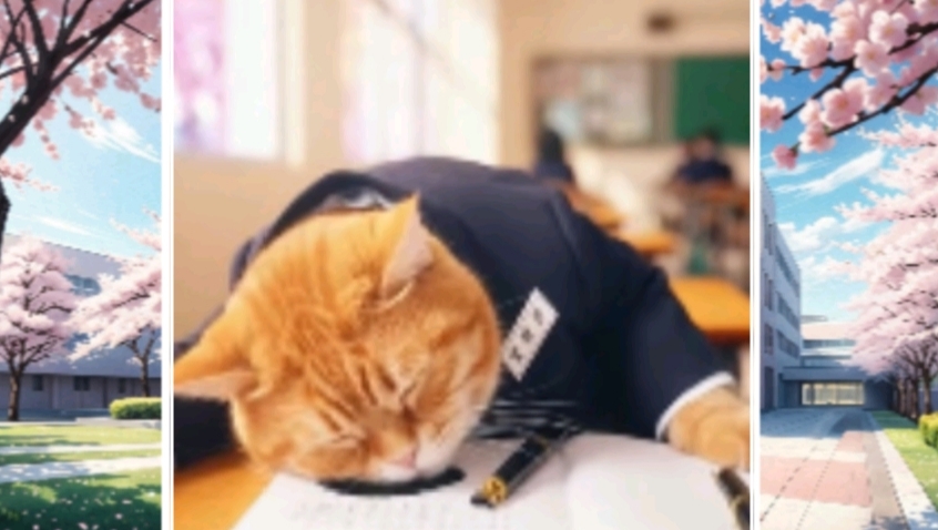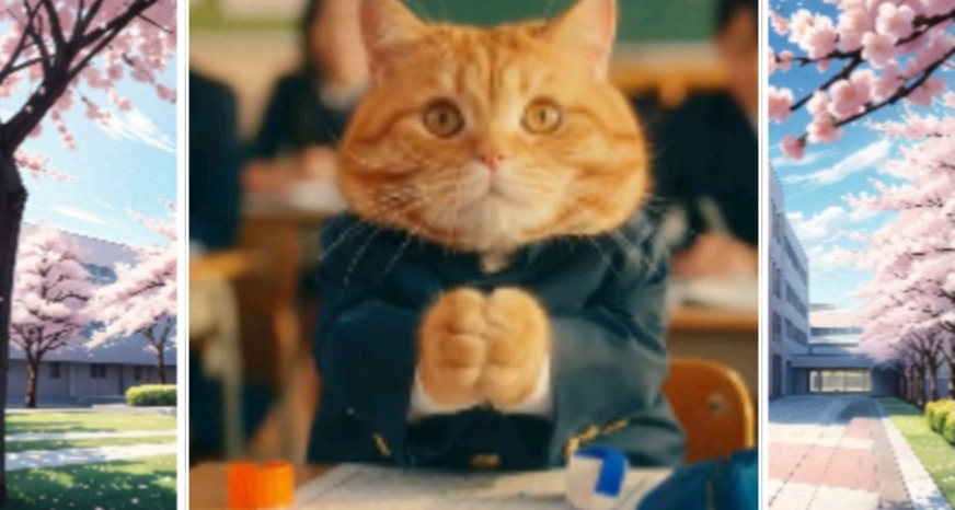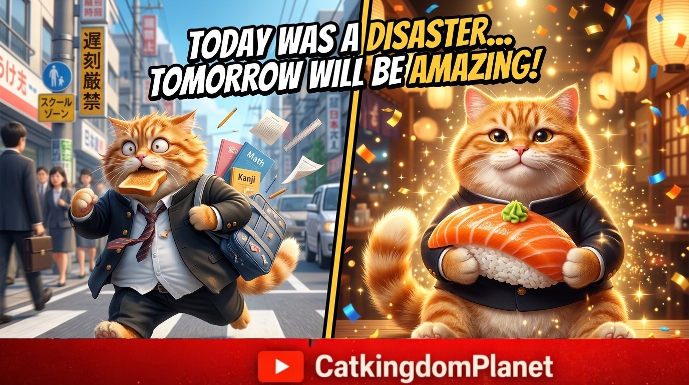 เรื่องราวเริ่มขึ้นที่ห้องนอนเล็กๆ นาฬิกาปลุกหัวเตียงถ่านหมดสนิท เจ้าส้มตื่นขึ้นมาตอน 8 โมงเช้า (ซึ่งต้องเข้าเรียน 8:10!) ความโกลาหลเริ่มขึ้นเมื่อมันพยายามยัดพุงอ้วนๆ เข้าไปในชุดนักเรียน จนกระดุมกระเด็นไปกระแทกกระจกแตก มันรีบคว้ารองเท้ามาใส่ (คนละสี) แล้วคาบขนมปังวิ่งออกจากบ้านแบบอนิเมะ แต่ดันสะดุดหางตัวเองล้มไถลไปกับพื้นจนขนมปังลอยไปแปะจมูกหมาดุหน้าปากซอย