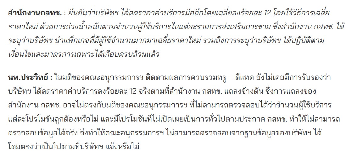 กสทช.เลี่ยงที่จะตอบว่า ลดค่าบริการลงร้อยละ 12 ลดอะไร ตรวจสอบอย่างไร