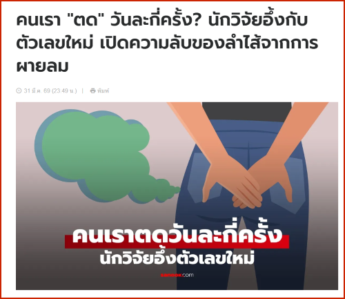 ผู้ใหญ่ที่มีสุขภาพดี จะผายลมเฉลี่ย 32 ครั้งต่อวัน