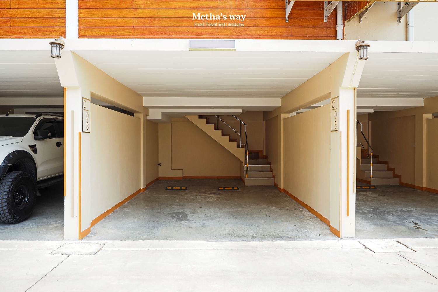 อันนี้เมเลือกพักเอง จะได้ความเป็นส่วนตัวมากขึ้น เพราะห้องพักแยกออกจากอาคารหลัก และมีที่จอดรถส่วนตัวด้านล่าง