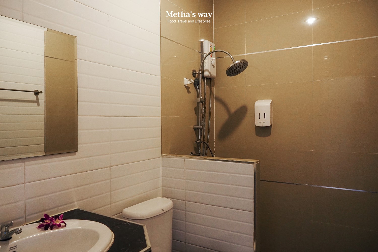 ห้องน้ำจะแบ่งโซนเปียก-แห้ง และมีเครื่องทำน้ำอุ่นให้เรียบร้อย