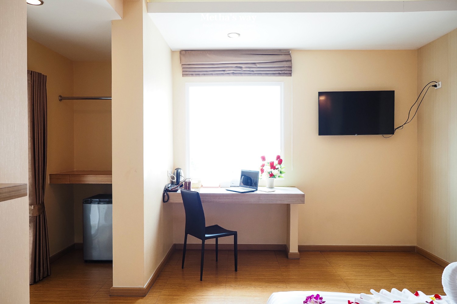 ความพิเศษอีกอย่างนึงของห้องไทป์นี้คือมีโต๊ะทำงานยาวสุดความกว้างของห้อง วางของได้เยอะ เหมาะกับคนที่อยากได้พื้นที่ส่วนตัว หรือเอางานมาทำด้วย