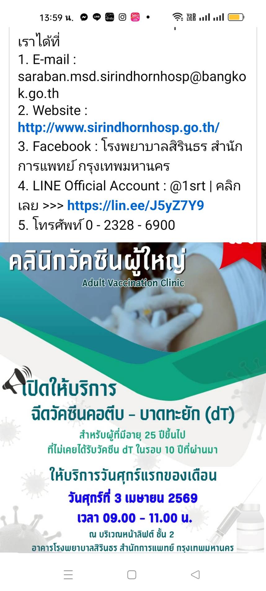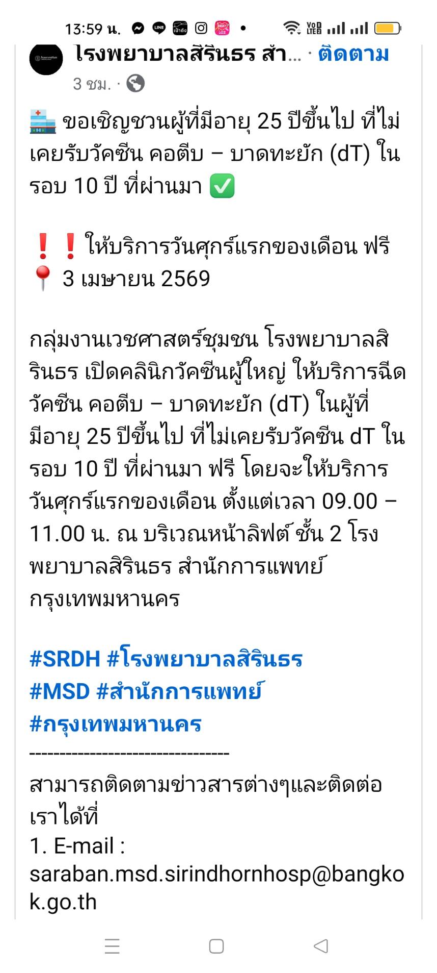 ฉีดวัคซีนคอตีบ+บาดทะยัก สำหรับผู้ที่อายุ25 ปีขึ้นไป ฟรีค่ะ ที่รพ.สิรินธร อ่อนนุช90 เขตประเวศค่ะ