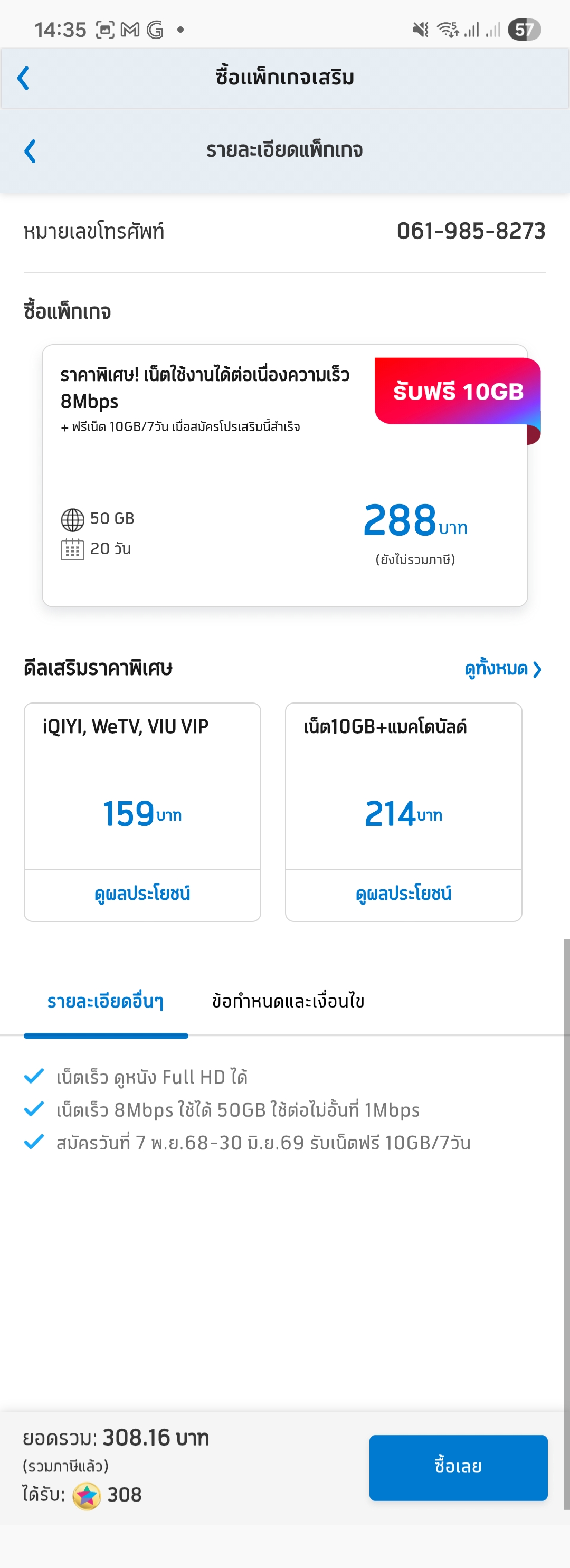 จากเดิมที่เคยได้ใช้เน็ต 30 วัน อยู่ดี ๆ ปรับเหลือ 20 วันเฉย แล้วไม่ได้มีอะไรดีขึ้นเลยนะ เน็ตก็ไม่ได้เร็วขึ้น แถมบางช่วงคือวิ่งไม่เต็มสปีดอีกต่างหาก อยู่ศรีราชาเลยโรบินสันมานิดเดียว สัญญาณ 1 ขีด บ้าบอมาก