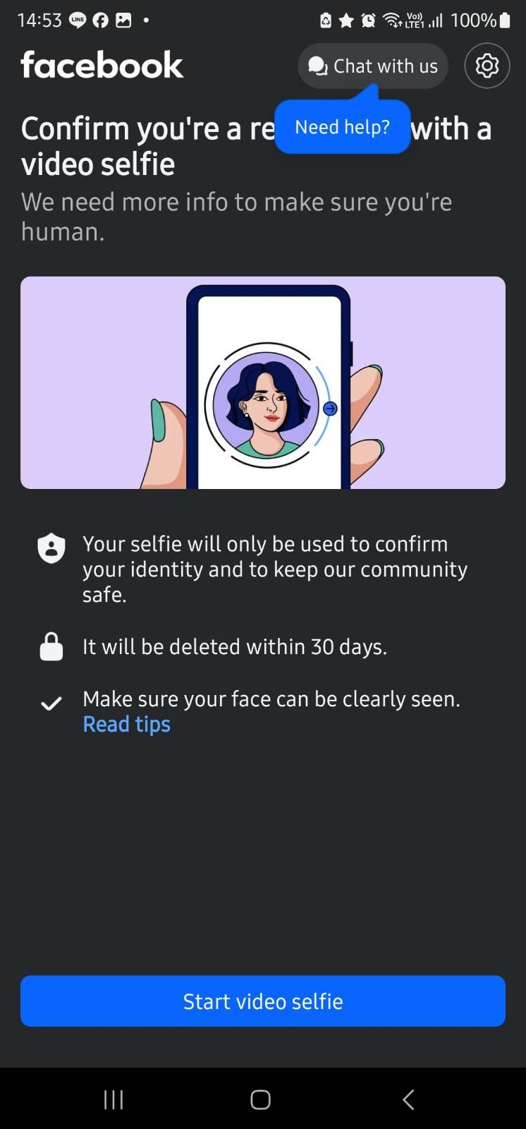 Facebook ให้ยืนยันตัวตนด้วยการ ทำ vdo selfie ใครเคยเจอบ้างคะ?