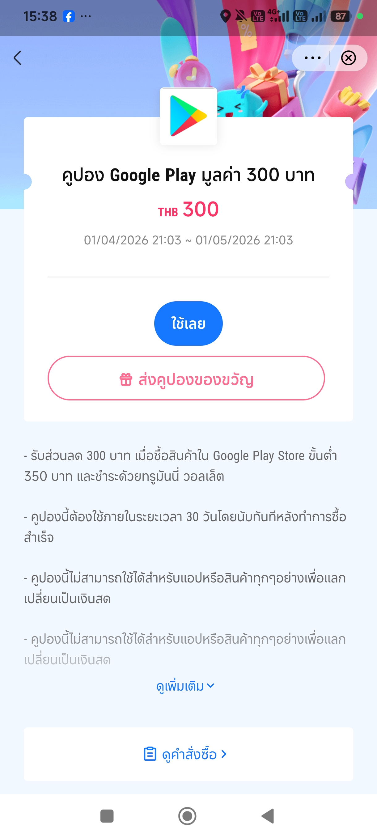 กะว่าจะเอาไว้เติมเกม เพื่อเป็นส่วนลด เงื่อนไขบอกว่าต้องซื้อใน 350 ขึ้นไป
