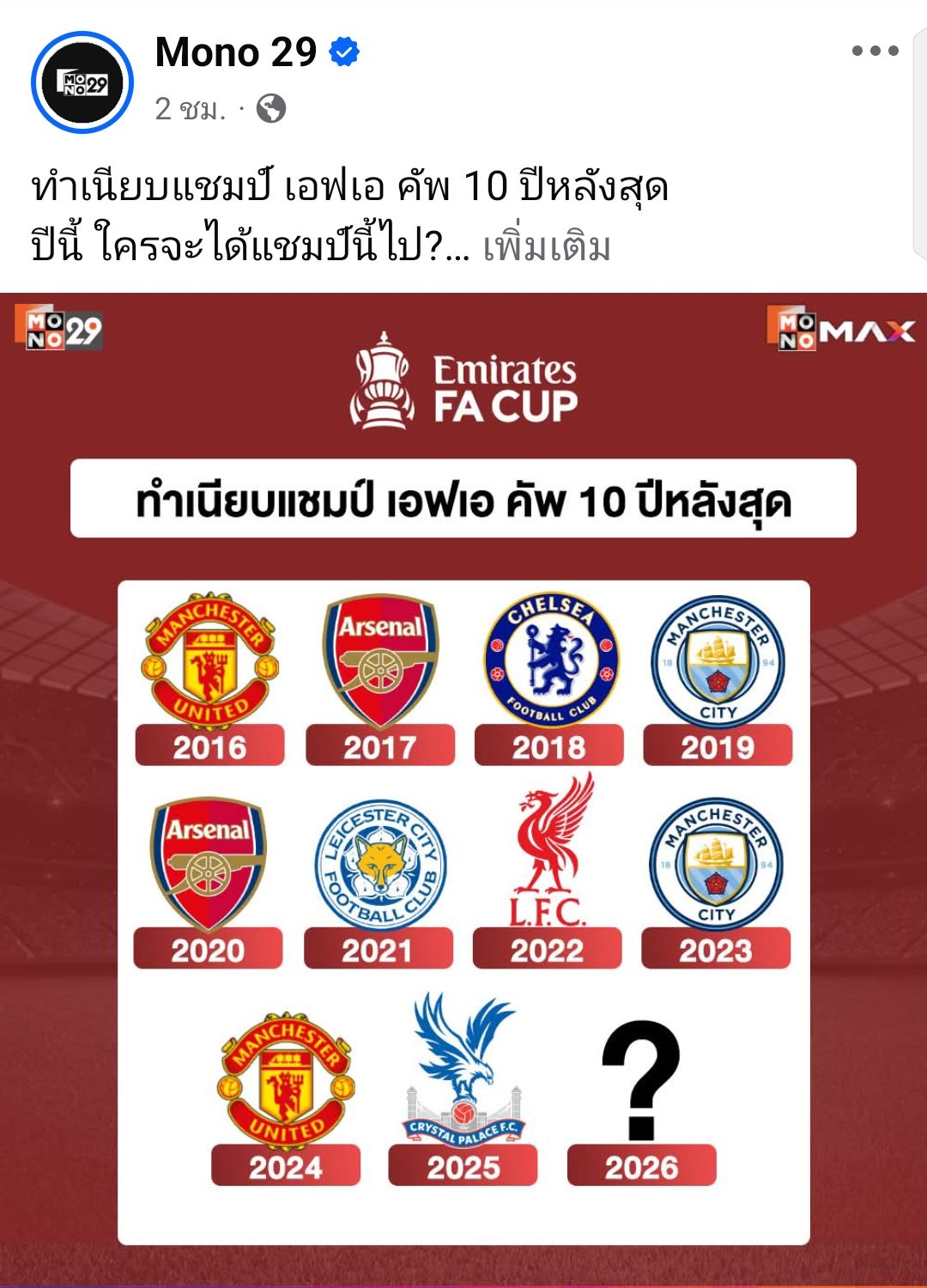 📺 #Mono29 จัดให้ ⚽🏆🏴 เอฟเอ คัพ รอบ 5 (16 ทีมสุดท้าย) 🔥