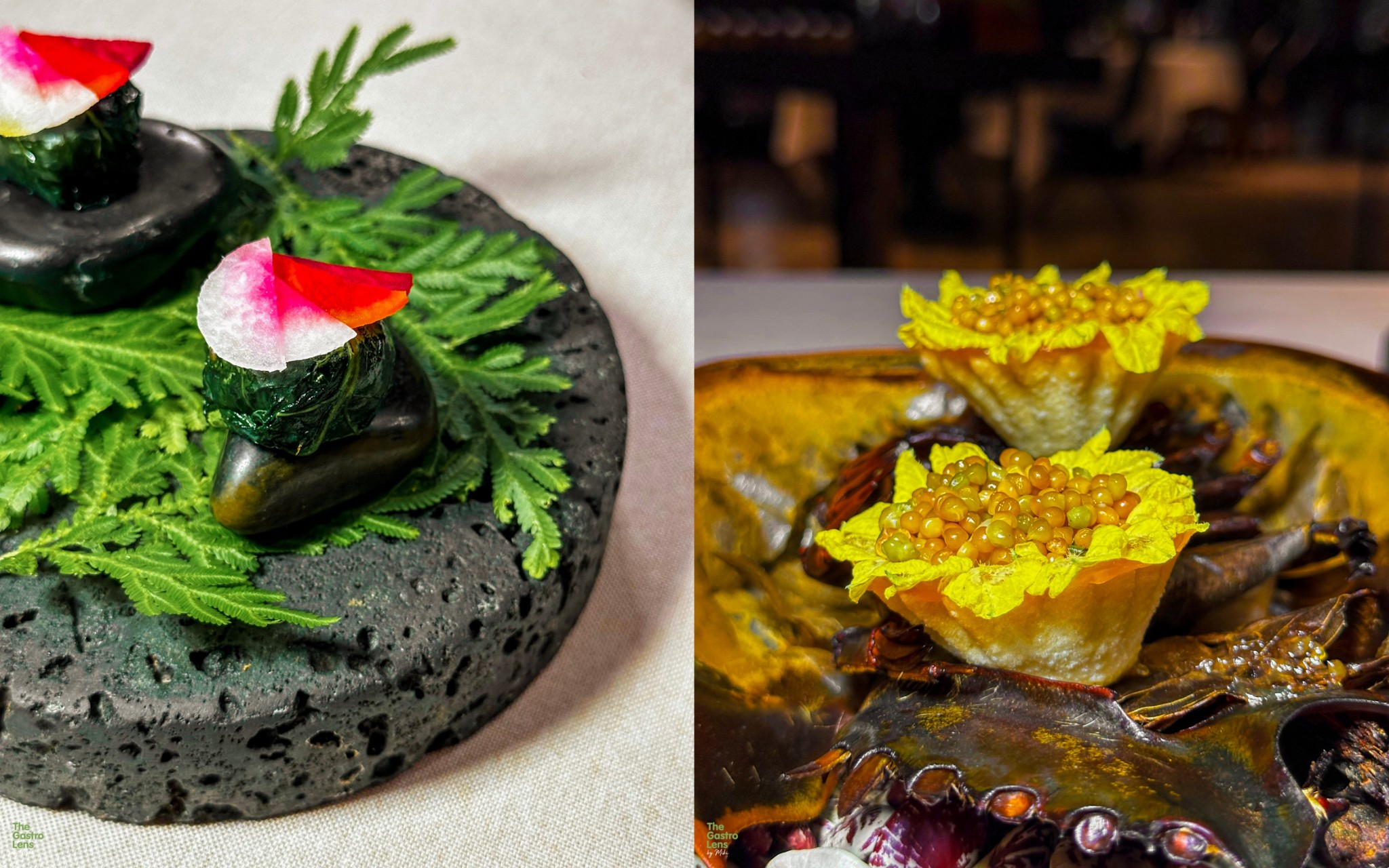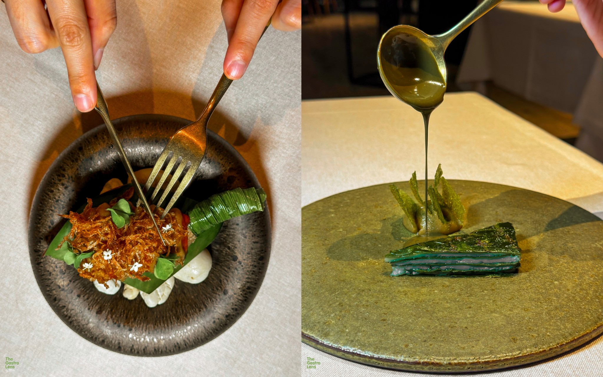 ผักเหมียง - ใบเหมียงหรือใบเหลียง ผักขึ้นชื่อของภาคใต้ นำมา layer ซ้อนกับสแกลลอปรสหวานหอมนุ่ม ราดด้วยซอสสแกลลอปผัดฉ่า รสเข้มข้น และมีใบเหมียงกรอบดิปกับซอสกาลิกพิวเร่ให้ทานเคียงด้วย