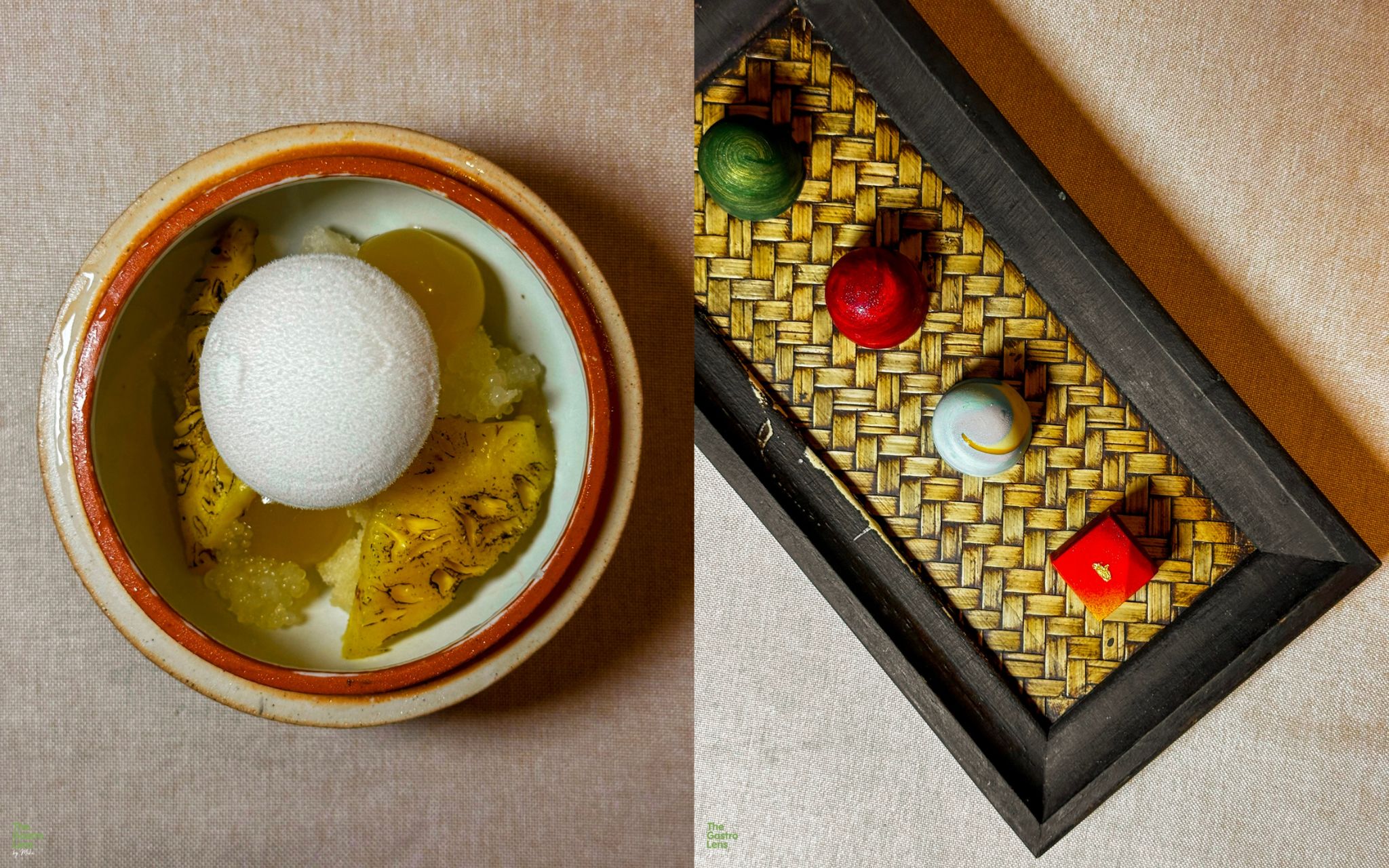 The Prelude ก่อนจะเข้าสู่คอร์สหลัก ทางร้านจะต้อนรับเราด้วย Welcome Drink เป็นโฮมเมดเลมอนเนด รสชาติเปรี้ยวหวานสดชื่น ช่วยปลุกน้ำย่อยให้อยากเริ่มทานอาหารได้ดีมากค่ะ ตามด้วยของว่างเรียกน้ำย่อยอย่าง แผ่นแป้งญวนทอด ที่โรยด้วยข้าวสามสีและผงเห็ดเพื่อเพิ่มความนัว ทานเล่นเพลินๆ ระหว่างรอคอร์สต่อไป