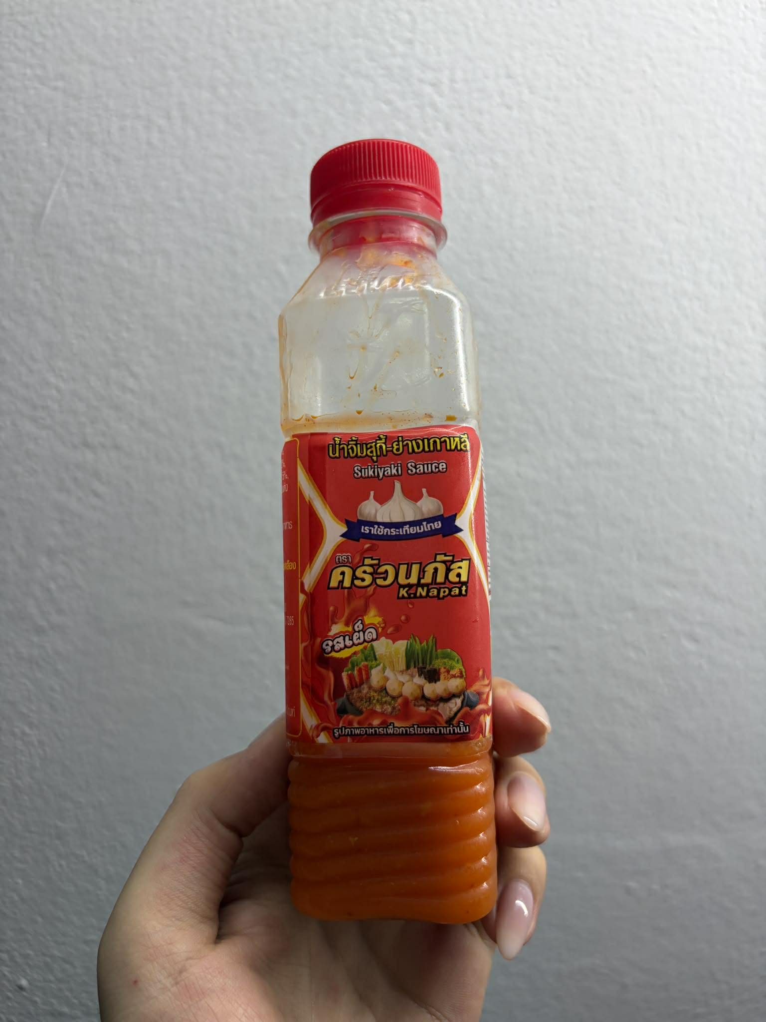 แต่ไม่เป็นไรค่ะ เรามีน้ำจิ้มสุกี้ เอามาเพิ่มรสชาติ น้ำจิ้มอันนี้เป็นขอตราครัวนภัสค่ะ แม้จะบอกว่ารสเผ็ด แต่ก็กินได้ค่ะ ไม่ได้เผ็ดขนาดนั้น พอให้อร่อยๆ ได้ไม่แสบปากแสบคอ
