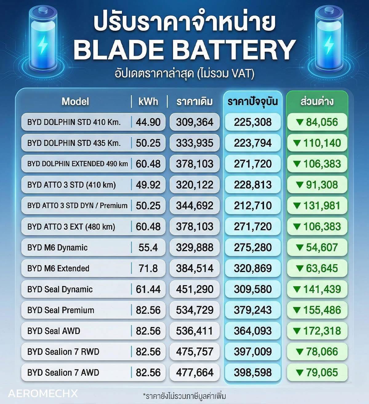 Update ราคา Blade Battery ของ BYD