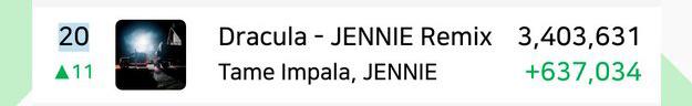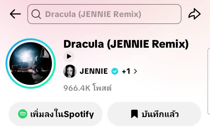 🧛♀️ Dracula – JENNIE Remix ทำยอดสตรีมทะลุ 3 ล้านเป็นครั้งแรกนับตั้งแต่ปล่อยออกมาเมื่อวันที่ 6 กุมภาพันธ์ เข้าสู่ท็อป 20 บนชาร์ต Spotify Global 🥳