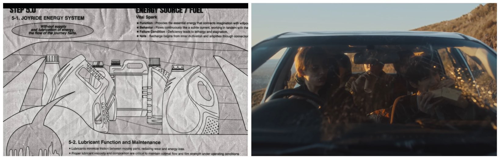 ซึ่งระบุรายละเอียดของเครื่องมือและอะไหล่ที่จำเป็นสำหรับการถอดประกอบยานพาหนะ และในขั้นตอนนี้ CORTIS ถูกนิยามว่าเป็น "Young Creator Crew" หรือกลุ่มคนรุ่นใหม่ผู้สร้างสรรค์ผลงานด้วยตัวเอง สมาชิกแต่ละคนจะถูกเปรียบเทียบกับอุปกรณ์ช่าง เช่น