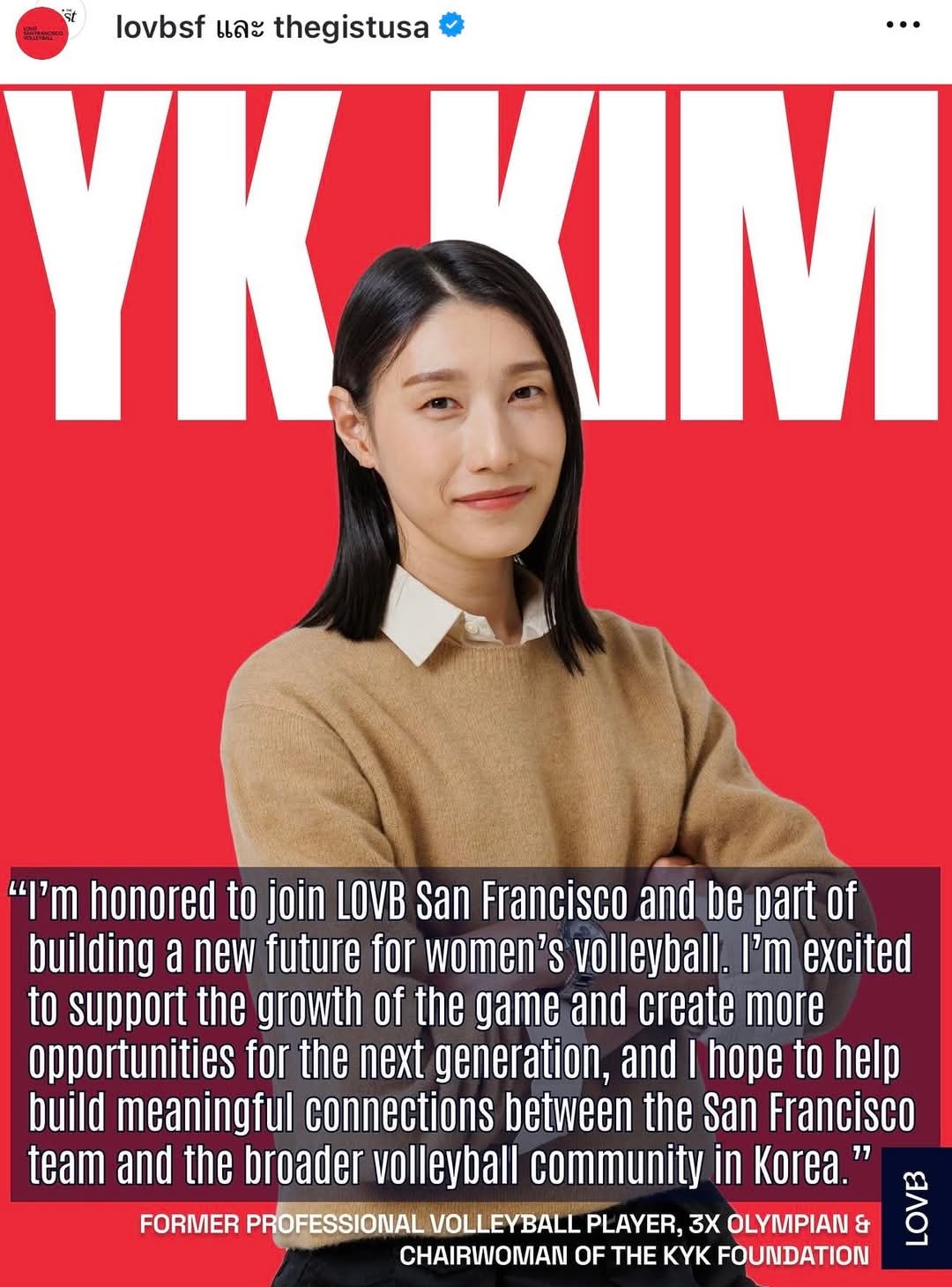 โค้ชกิ๊ฟคุมทีม แต่Kim Yeon-Koung🇰🇷รวยเกิน ก็เป็นเจ้าของร่วมของLOVB San Francisco ทีมใหม่ที่จะเล่นในLOVBซีซั่นหน้าไปเลย