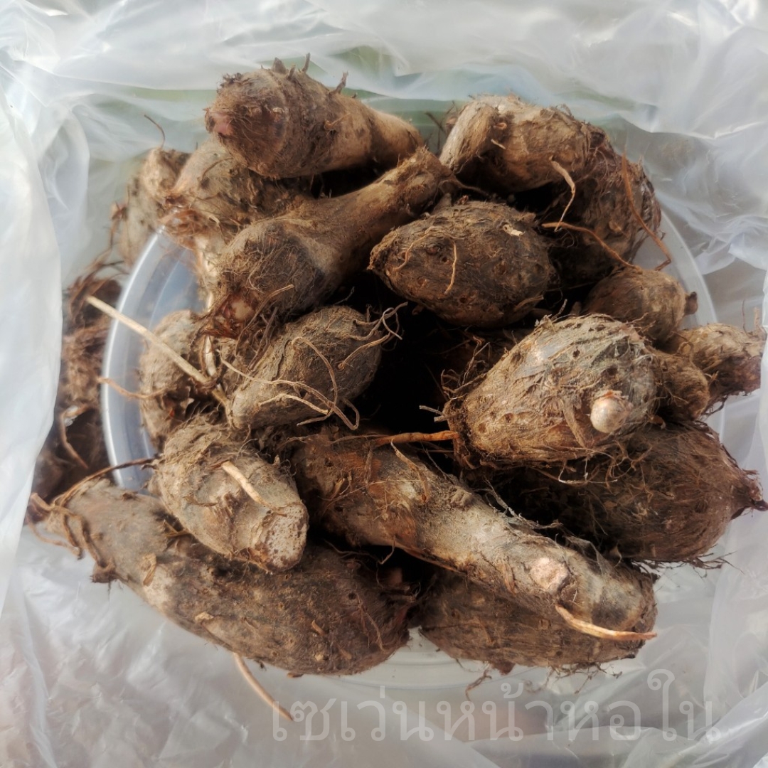 เกษตรกรจะใช้เจ้าลูกเผือกนี่แหล่ะครับไปเพาะเพื่อน้ำไปปลูกขยายพันธุ์ต่อไป แต่เจ้าลูกเผือกเนี่ย เอามาปรุงสุก ก็กินอร่อยนะครับ