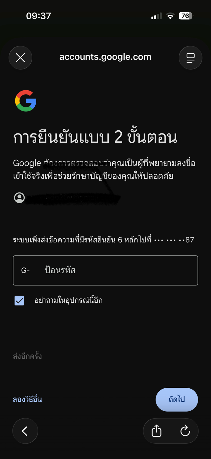 ใส่อีเมล์ กดถัดไป ยังไม่ได้ใส่รหัสเลย มาหน้านี้เลยคะ มีการป้องกันการเข้าสู่ระบบที่น่า สงสัย เราบล็อคผู้พยายามเข้าถึงบัญชีของคุณเนื่องจากเราไม่แน่ใจว่าใช่ คุณหรือไม่ การดำเนินการนี้จะเกิดขึ้นเมื่อเร
