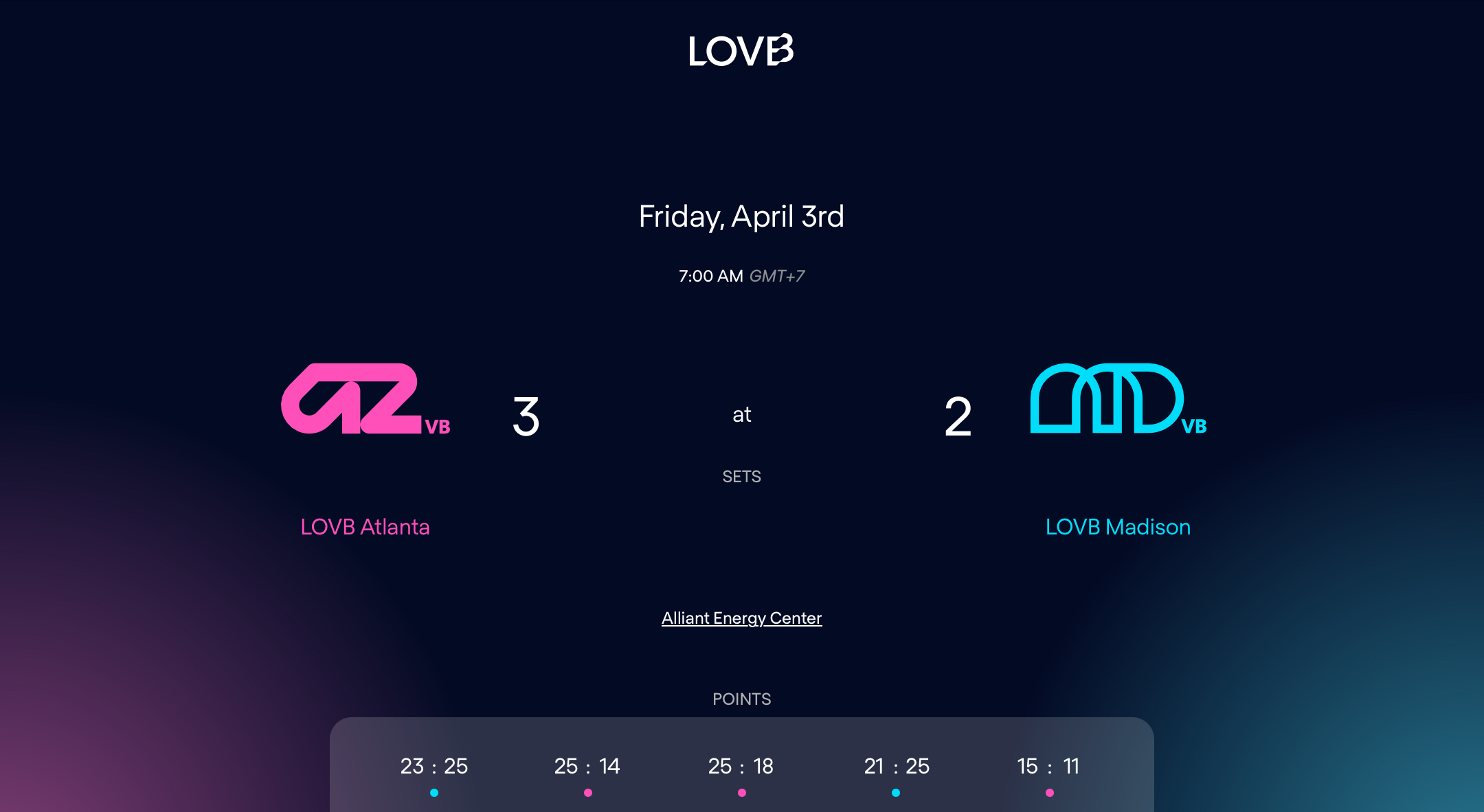 LOVB Atlanta🩷 3-2 LOVB Madison🩵 (23-25 25-24 25-18 21-25 15-11)
