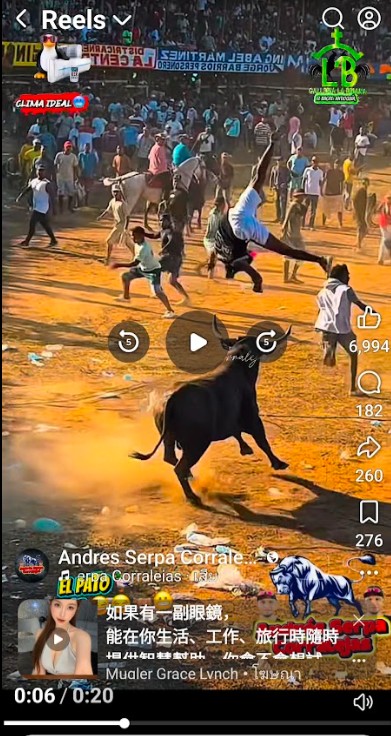 มีคลิปในมือถือไม่ทราบว่ามาจากไหนจำนวนมากที่มีภาพวัววิ่งไล่ขวิด ไล่ชนคนที่กำลังวิ่งหนี กระเด็น กระดอน ดูแล้วน่าจะต้องตาย